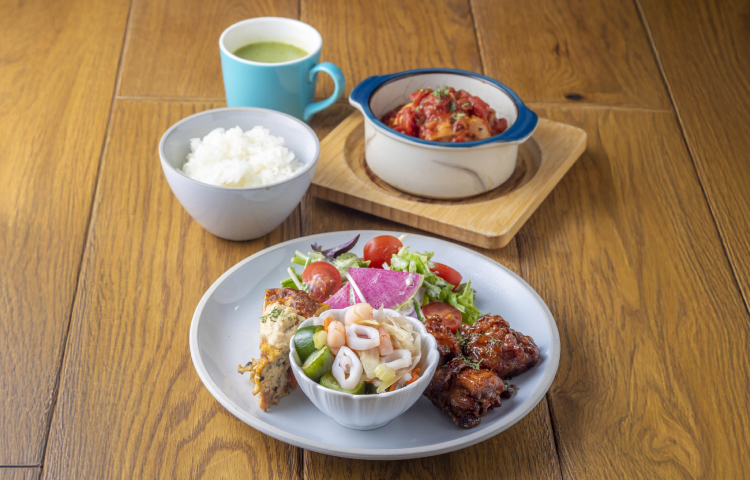 朝採り野菜たっぷりのデリカテッセンを昼も夜も満喫。