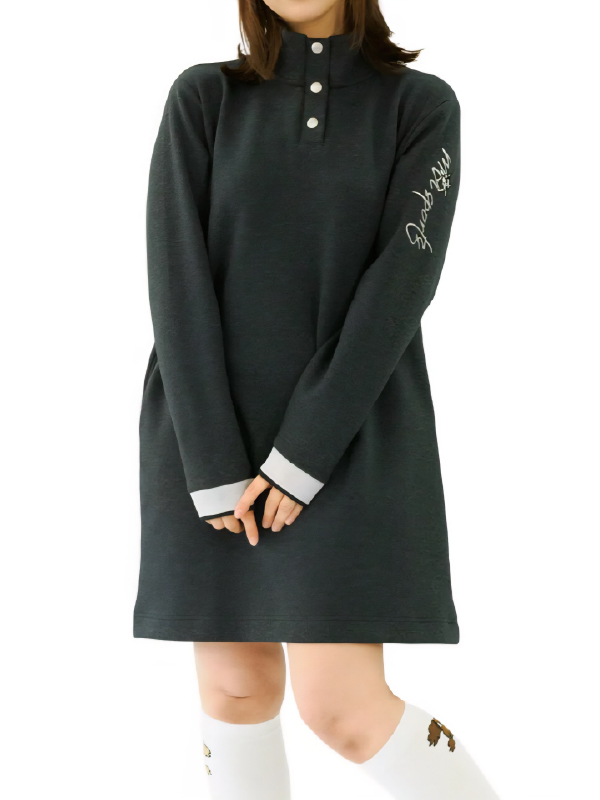 - 一枚で主役になるオフタートルとAラインのシルエット。左袖にはキャラクタープリントと刺繍を施してあり、ストレッチ性もあるので可愛さと快適さを両立。レギンスやスキニーパンツと相性抜群でコーディネートが楽しめます。