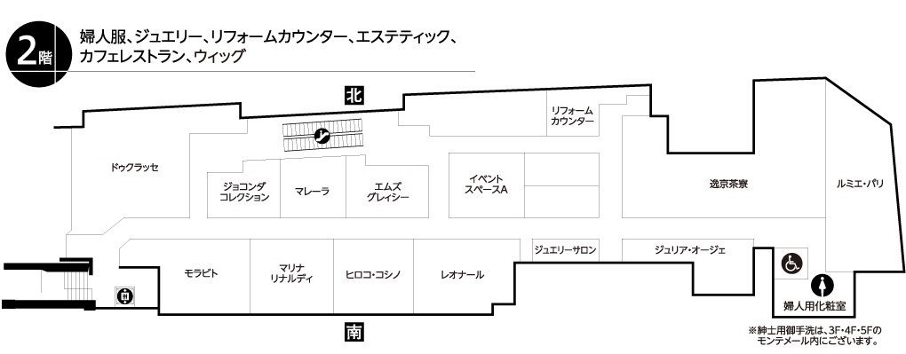 婦人服・ジュエリー・リフォームカウンター・エステティック・カフェレストラン・ウィッグ