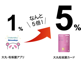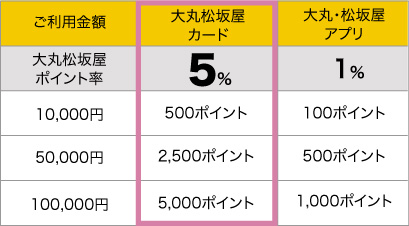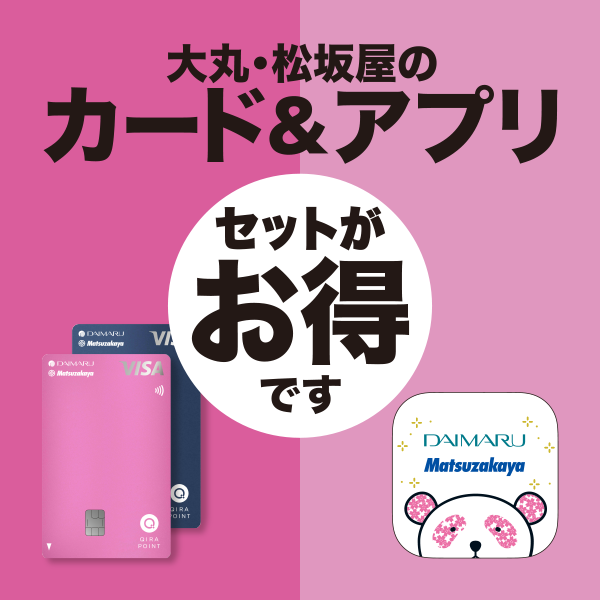 大丸松坂屋ポイントは 100 円(本体価格)につき、大丸・松坂屋アプリなら1ポイントが貯まるところ、大丸松坂屋カードなら5倍の5ポイントが貯まります!
