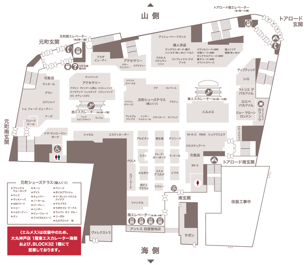 2025/5/14(水)〈エルメス〉は改装中のため、大丸神戸店1階東エスカレーター海側および、BLOCK32(明海ビル)1階にて営業