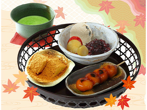 あんみつやぜんざい、わらびもち等の和スイーツや、お昼には宇治抹茶を使用したおそばもいただける京甘味処。お子さまメニュー対応店