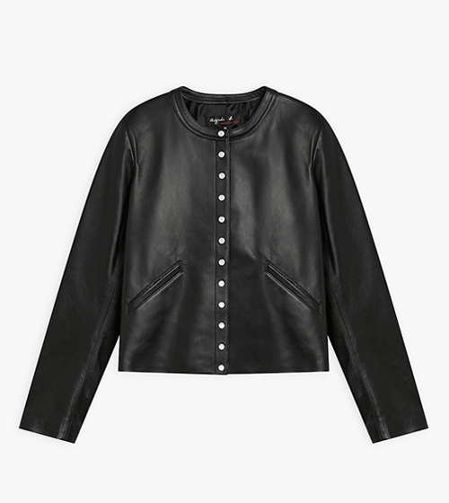 〈アニエスベー〉の定番アイテム羊革のカーディガンプレッションです。フランスの老舗のレザーファクトリーでこだわりの柔らかなレザーを使用し、着やすさはもちろん、スカートやパンツなどコーディネートしやすいデザインです。