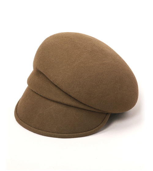 ウールフェルトを使用した、アシンメトリーのキャスケット。装飾はなくし、シルエットへのこだわりを重視しました。いつものスタイルにさらりと合わせて、ワンランク上の着こなしを。