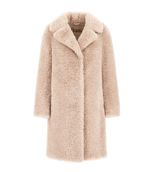 カーリーなフェイクファーを使用したチェスターコート。ソフトでふわふわとした肌触りが心地よく快適。見た目と着心地ともに温かさをもたらすボリューム感が、可愛らしさを纏います。