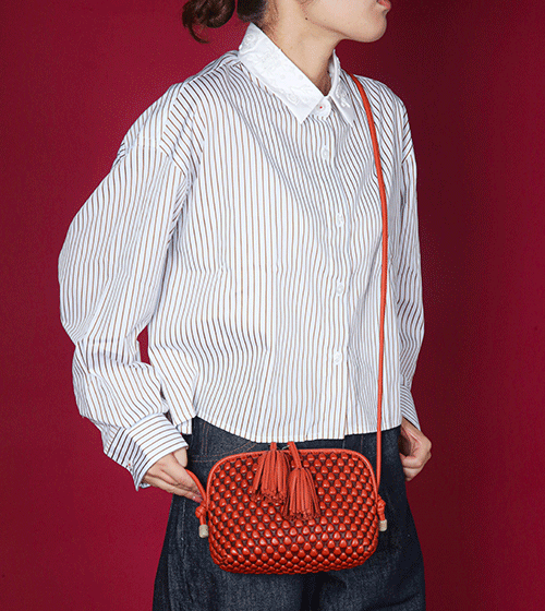 ドイツ/ミュンヘン生まれのデザイナーによる、スペインのバッグブランド。長さを変えた二つの大きなタッセルがアイコンとなっているシンプルなデザイン。間口が大きく開くので、物の出し入れがしやすく、小さいながら容量もあり人気のモデルです。