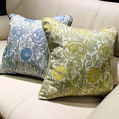 7階〈ホームドレッシング〉人気のピンクアンドローズに新色のブルーが加わりました。1890年ウイリアム・モリスのデザインで、バラとカーネーションが絡み合う様を曲線でシンプルに描いています。