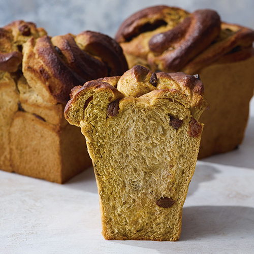 アールグレイの茶葉を練り込んだブリオッシュ生地に、紅茶のアーモンドクリームとラムレーズンを巻き込み焼き上げました。