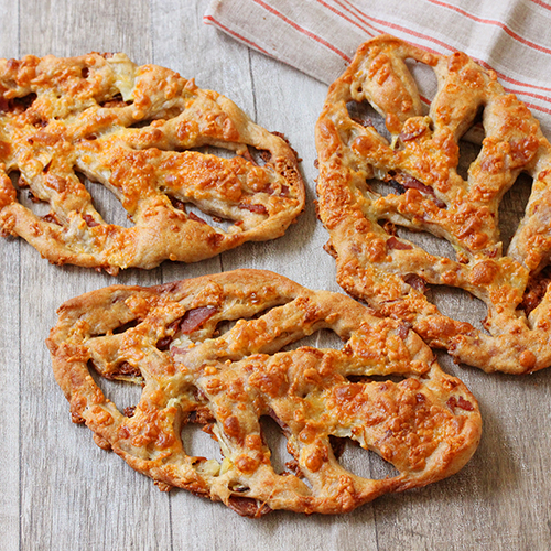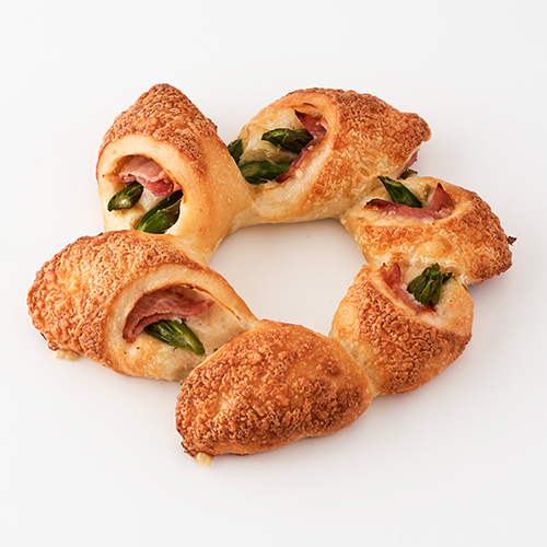 香ばしく焼き上げた生地に、アスパラとベーコンを合わせました。ベーコンのコクとアスパラの食感がアクセントとなり、ほどよい塩味と旨みが広がる一品です。