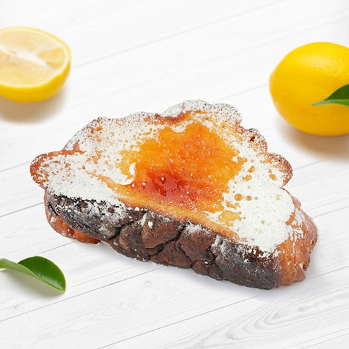 カマンベールと瀬戸内レモンを合わせたフィリングを折り込み、バニラ風味のフレンチ液に浸して焼き上げ、ブリュレしました。