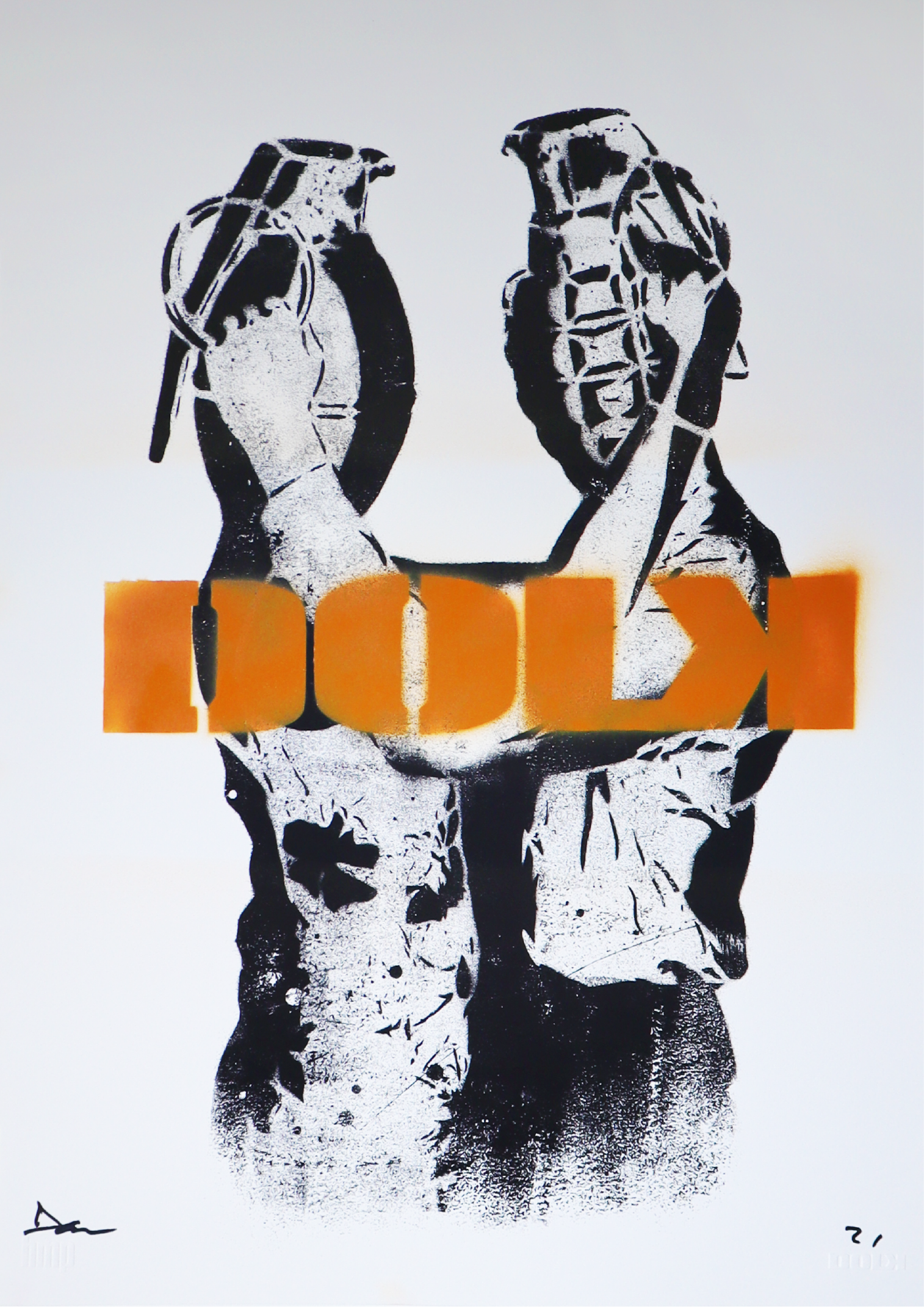 ストリートアーティストとして活動したのち、新たな境地へ。幼い少女までテロや暴動に関わる社会に風刺をこめた作品をはじめ、メッセージ性のあるクールな作風。