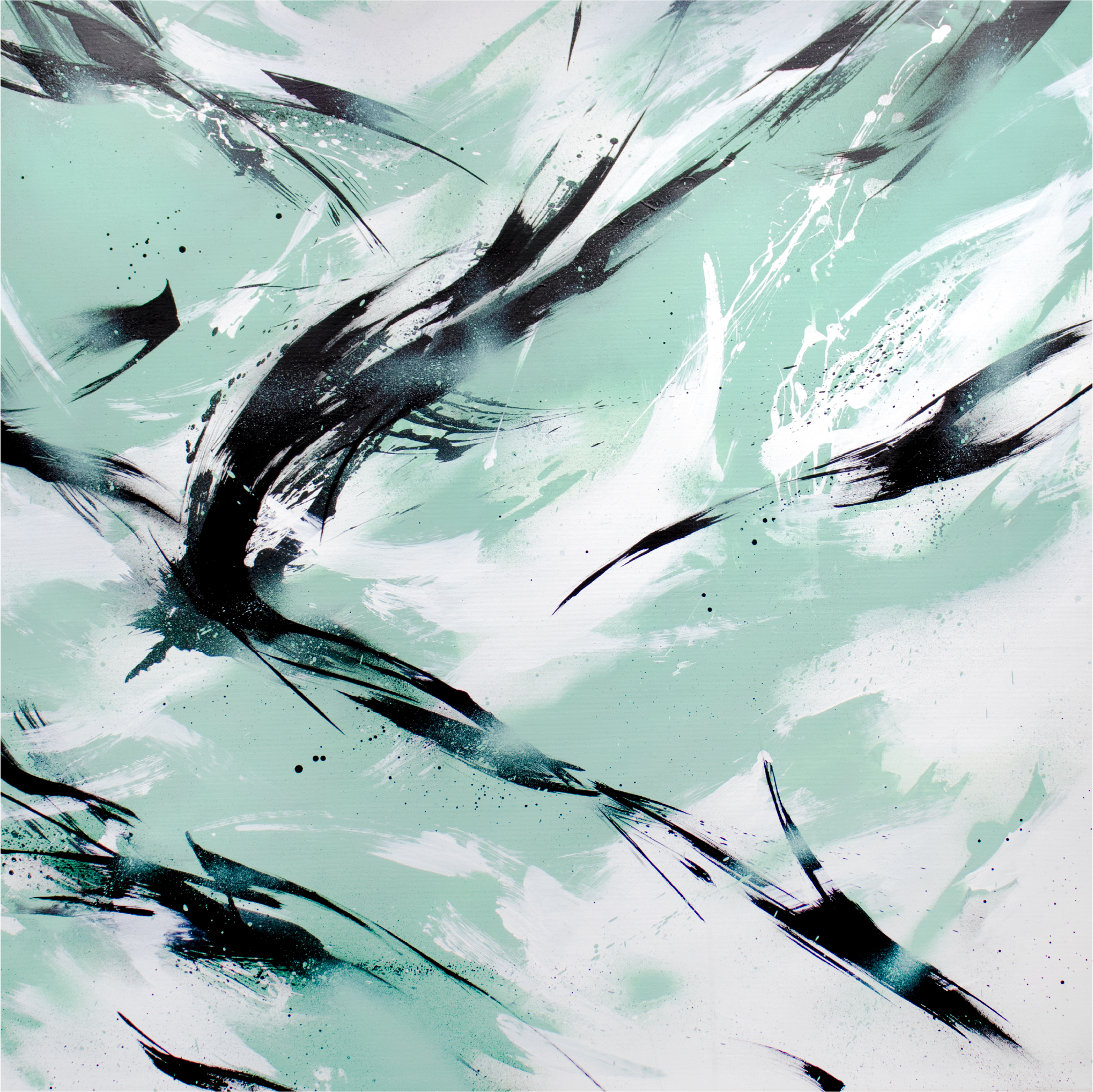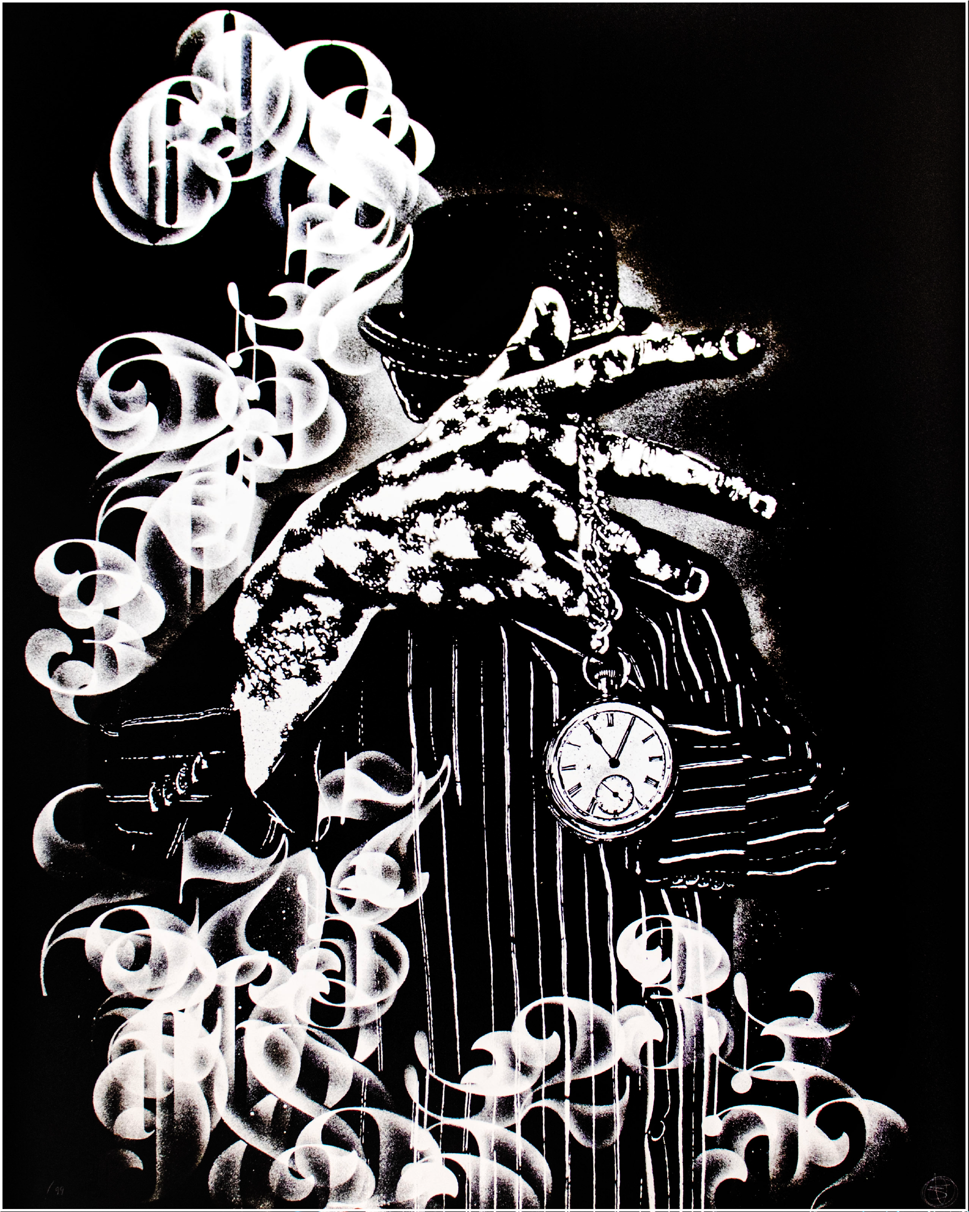 水しぶきのような抽象的スプレーペインティングで知られる、英国ストリートアートのパイオニア。黒を主とした流れるような線は、書道の影響を受けているとも。