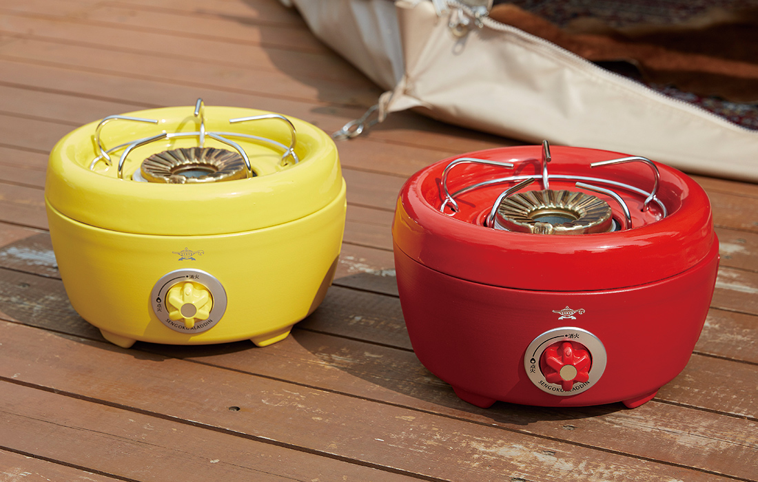 こちらも屋内外ともに使える、カセットボンベ式の直火カセットコンロ。愛嬌のある独特なフォルムは、みんなでま~るく囲むもよし、可愛いサイズなのでソロキャンプにもよし。バーナー部を取り巻くように中央がやや凹んだ形状により、風が吹いても火が消えにくい設計です。五徳の上に直接お鍋を置いて調理することも、付属の焼き網や輻射プレートを使用して焼く・炙ることもできます。食事は楽しんでこそ!と原さん。こんなユニークな調理器があれば、作るのも食べるのも、うんと楽しくなりますね♪