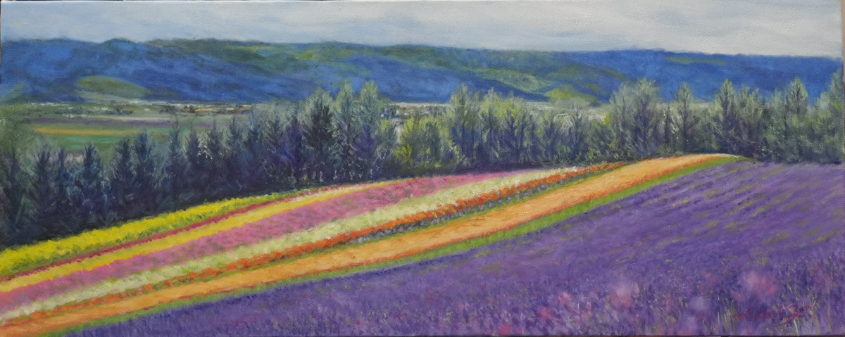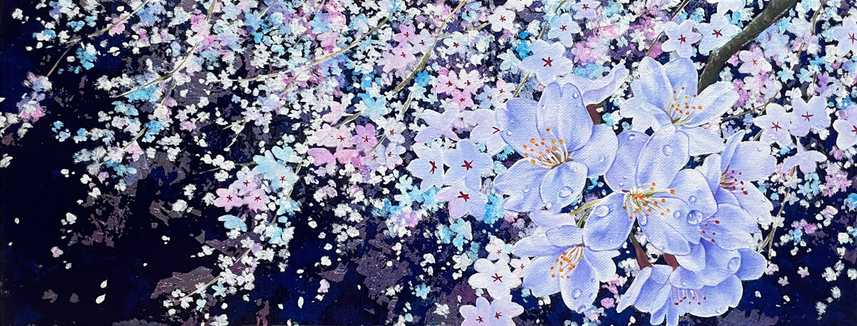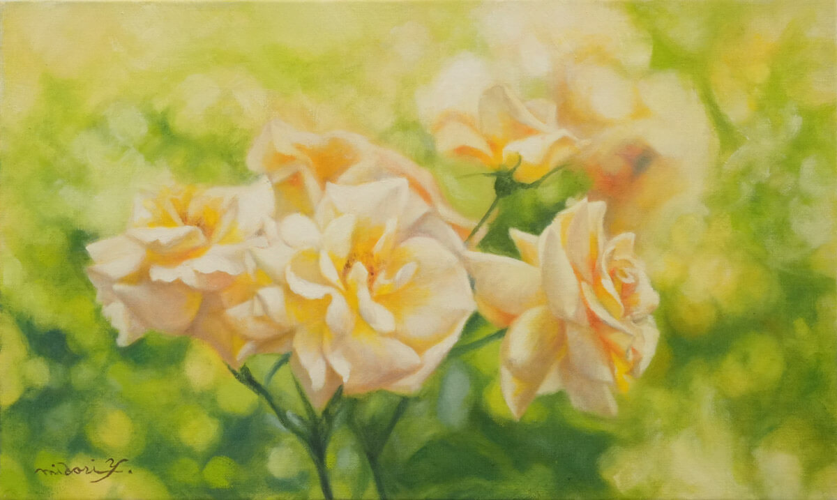不透明な油絵具を用いて、宝石のごとく透明感のある水を描きました。