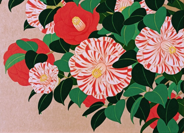裏彩色や天然朱を用いて明快で簡潔な表現で椿の花や樹木を描く。現実の取材と自身の心象を込めて描かれた花の姿、古典の世界と現代的な感覚を組み合わせた絵画をご覧いただきます。