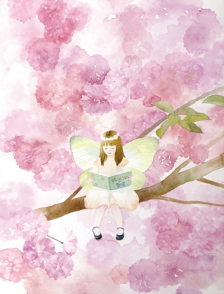 緑の森に遊ぶこどもや動物を透明水彩絵の具で繊細に描きます。愛くるしいファンタジーの世界をご堪能ください。