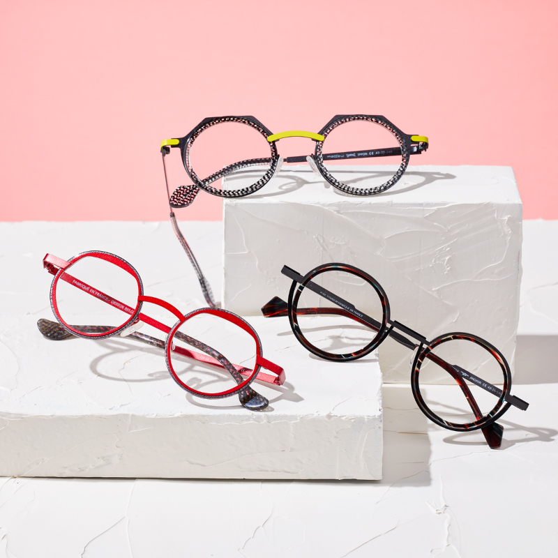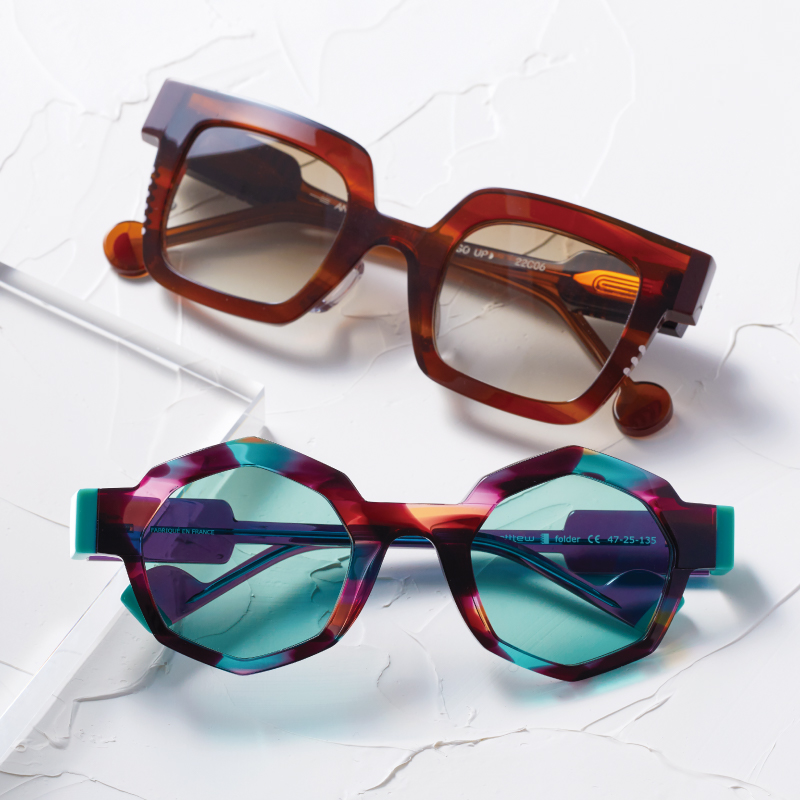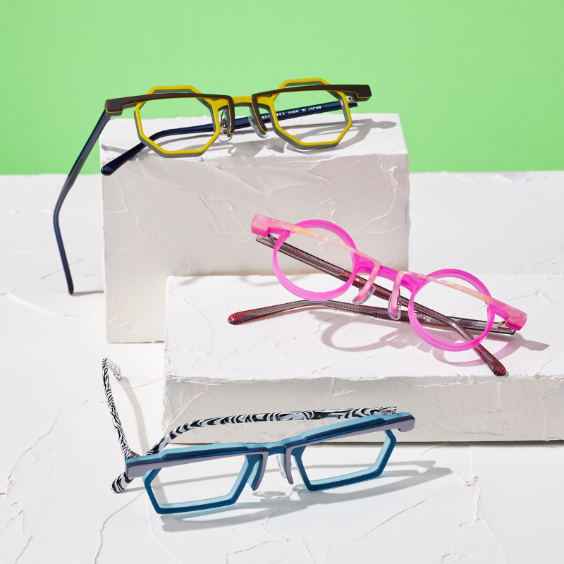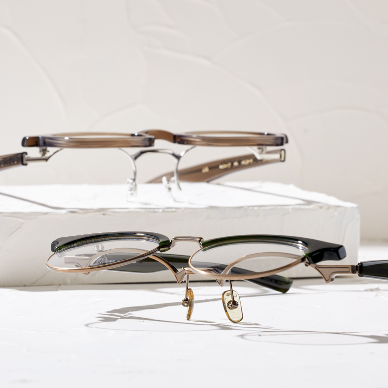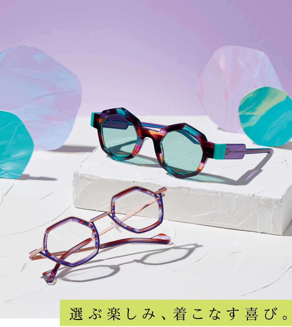 幾何学的&独創的なデザイン。眼鏡の名産地 鯖江の熟練職人が一本一本手作業で仕上げます。