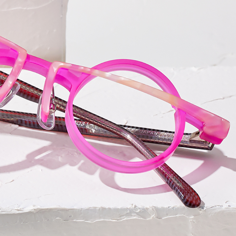 顔なじみがいい細身のラウンドフレームに、顔映りのいい色づかい。