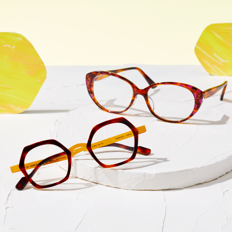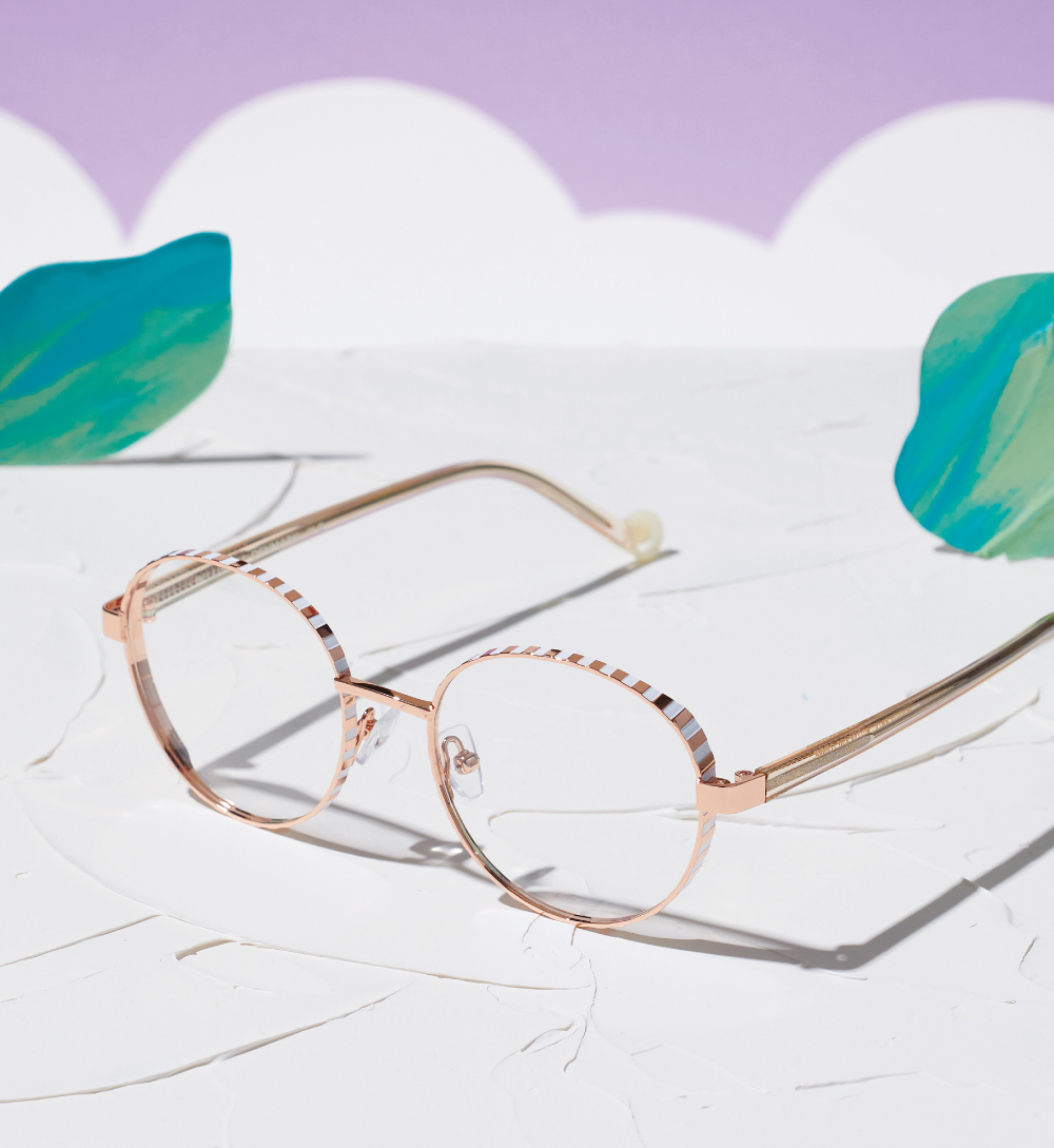 よく見ると水玉模様だったり、テンプルが鮮やかなイエローだったり、遊び心をさりげなく。