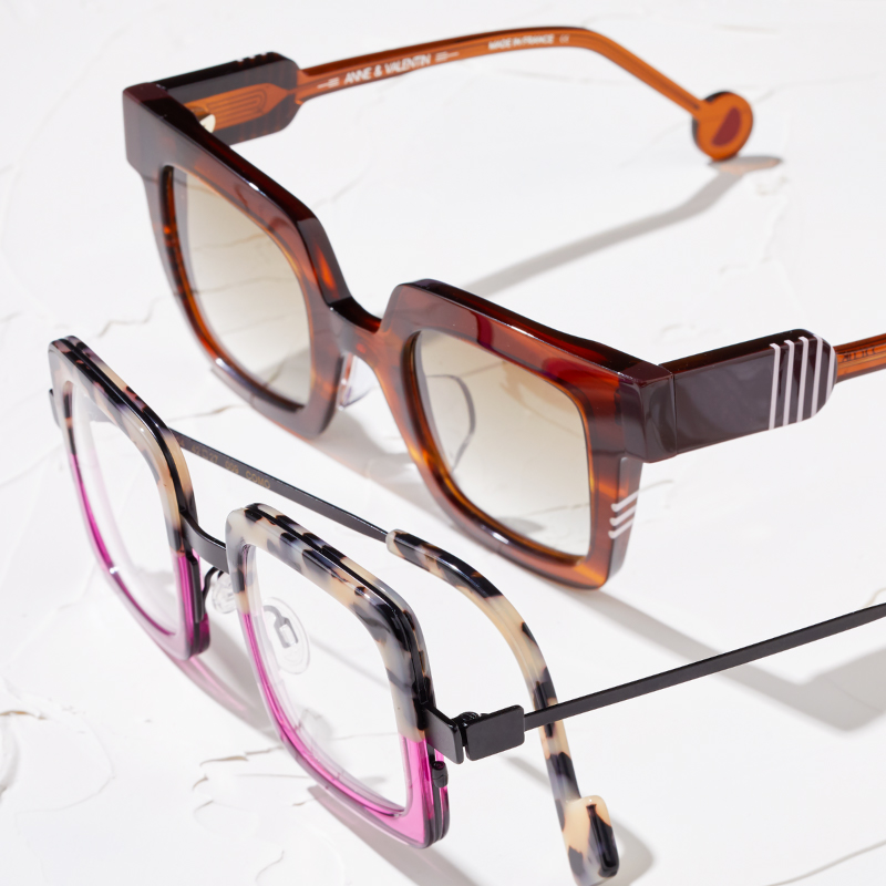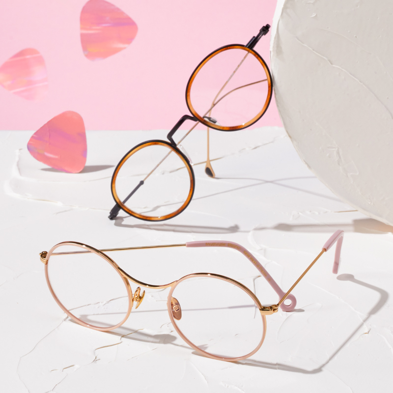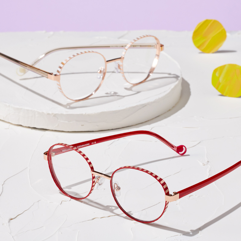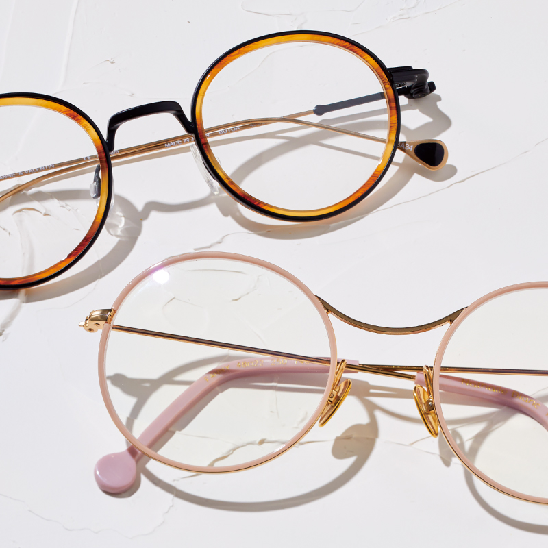 アパレル出身とインテリア出身の異業種デザイナー夫婦によるデンマークのブランド。リム周りやテンプルの先端など、ディテールまで楽しく。