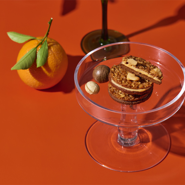 - “ナッツの王様”マカダミアナッツの形が異なる2種を使った甘く香ばしいザクザク食感のチュイールに、オレンジがほんのり香るチョコレートコーチングとザクホロオレンジクッキーを重ね合わせました。香ばしさとほんのりとした酸味、やさしい甘さが口の中で一体となる奥深い味わいと、ザクザク食感が特徴的な3層で出来た新感覚フロランタンです。
