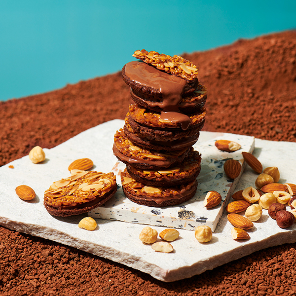 - 香ばしくキャラメリゼしたアーモンドチュイル、濃厚なコクのジャンドゥーヤチョコレート、食べた瞬間にほどけるザクホロ食感のシュトロイゼルの3層で出来たあたらしいフロランタンです。