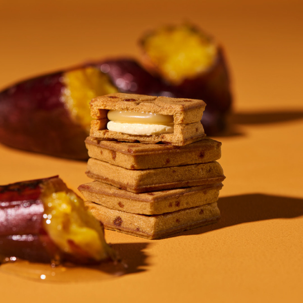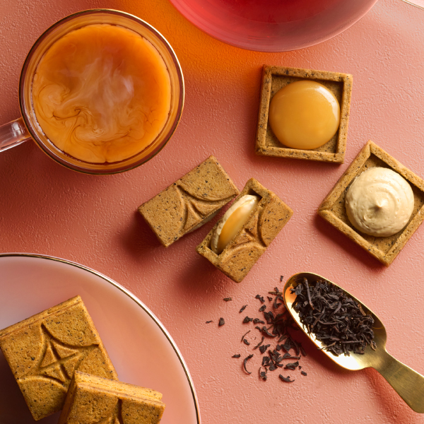 - 〈プレスバターサンド〉全店販売前に、先駆けて先行販売。和紅茶とベルガモットオイルを練り込んだアールグレイクッキーは、噛むたびにふわっと広がる華やかな香り。そこに、濃厚でコク深いれん乳バターキャラメルがとろけ、まるでミルクティーのようなやさしい甘さが広がります。さらに、バタークリームにも和紅茶とベルガモットオイルを加え、紅茶の芳醇な風味とバターの濃厚なコクが重なり合う一口に。寒い季節に寄り添う癒しの味わい。華やかな香りで贅沢なひと時を感じられるバターサンドは、冬のギフトにも最適です。香り高く、奥行きのある味わいをご褒美タイムにぜひじっくりご堪能ください。