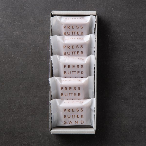 「まっすぐつくる、まっすぐ伝わる。」を掲げ、より良い材料を使い、しっかり手間をかけて、これからのお菓子を追求し続ける新しいおいしさのギフトブランド〈プレスバターサンド〉です。クッキーは和菓子の「はさみ焼き」の技術で焼き上げる事で余分な油分だけが抜け、食感と風味のベストバランスを実現。材料もシンプルに、バター本来の風味を生かしたバタークリームとバターキャラメルをサクサクのクッキー生地に挟み、2層仕立てに仕上げました。