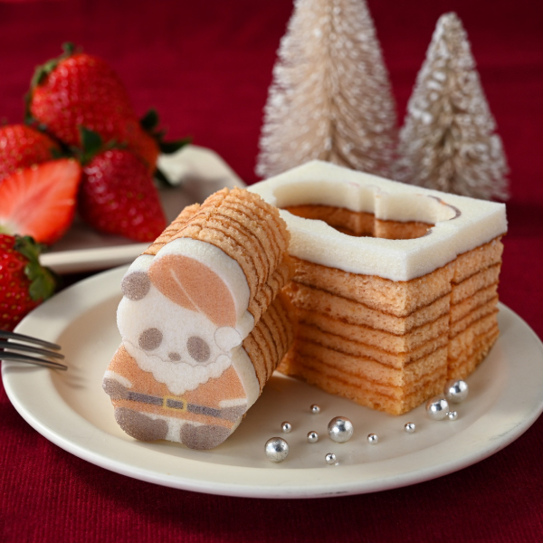 しっとり生地のバウムクーヘンを型抜きして食べるパンダバウム。この季節ならではのクリスマス限定のパンダバウムもございます。