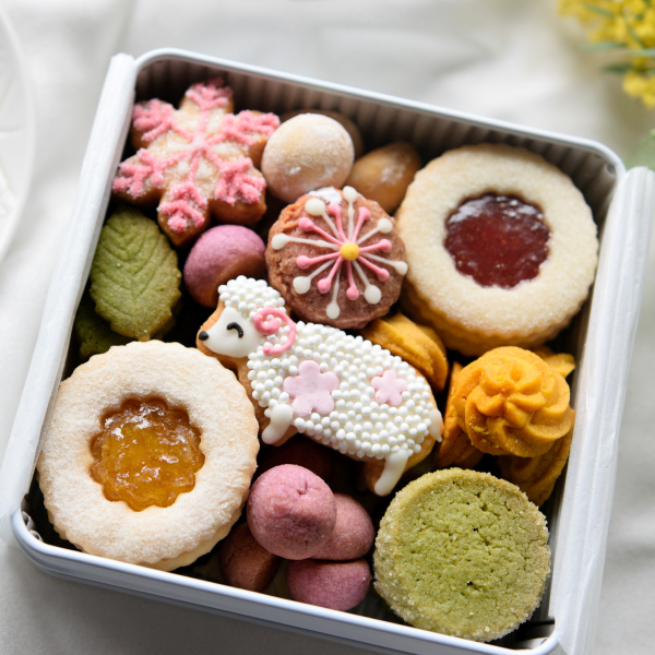 平和の象徴とされるひつじをモチーフに、いちごと柚子の香りが広がるフルーツサンドクッキーを詰め合わせました。手作りならではのやさしい甘さに、大切な人と過ごすひとときが、穏やかであたたかな時間となりますように、そんな願いを込めて。