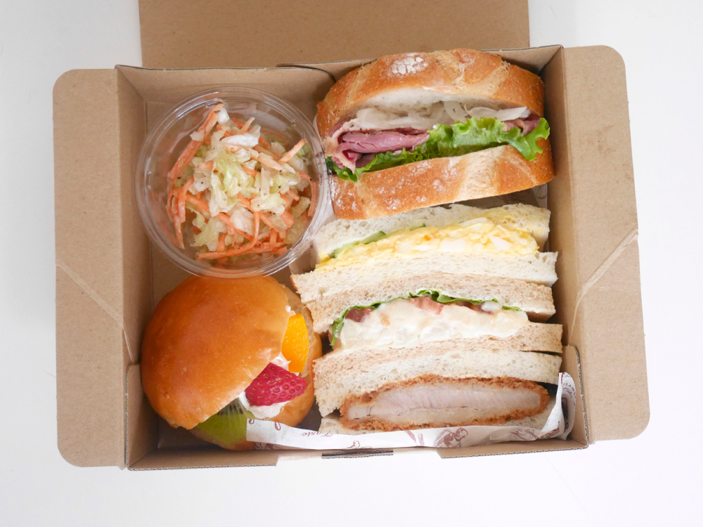 - ハム&チーズ・ツナ&トマト・たまご&きゅうり・照り焼きチキン・フルーツ・いちごジャム・ローストポーク&カマンベールチーズ・パストラミビーフ&玉ねぎマリネ