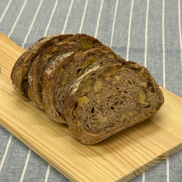 ハードパンに見えますが、実はしっとり柔らか系のパンなんです。くるみがアクセントになっていて、焼くのもいいですが、私は生でそのまま!赤ワインがピッタリです。