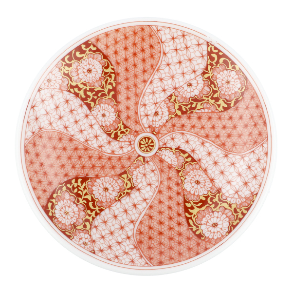 - 九谷アート小皿 赤絵細描花唐草文 福島礼子監修