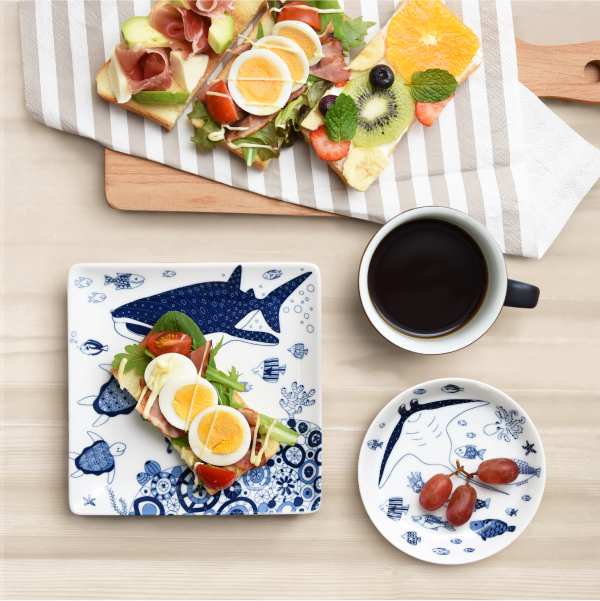 - 食パンがきれいにのせられるサイズ感で、和食とも相性がよく、お刺身などの盛り付けにもぴったりな正角皿と、小さめの取皿やしょうゆ皿として使うのに調度よい、使い勝手の良い小皿。