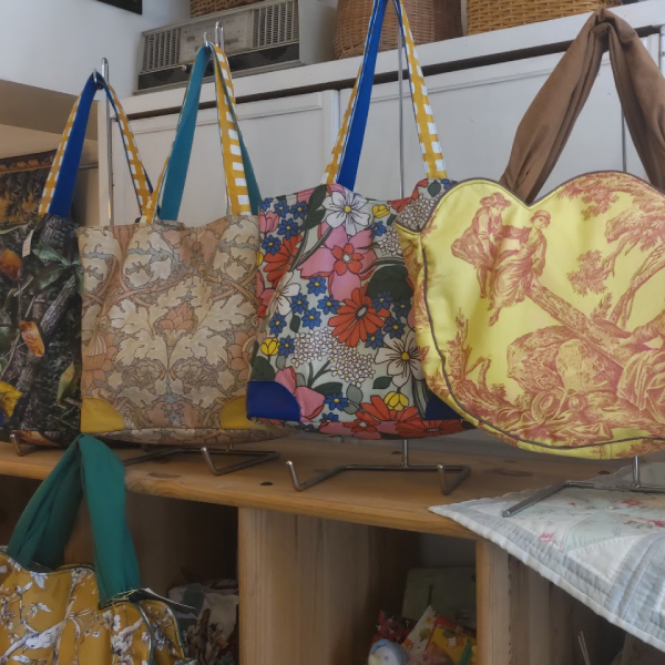 - ゴブラン織りやプリント生地を使い、裁断から縫製まで国内生産にこだわったオリジナルハンドバッグ。