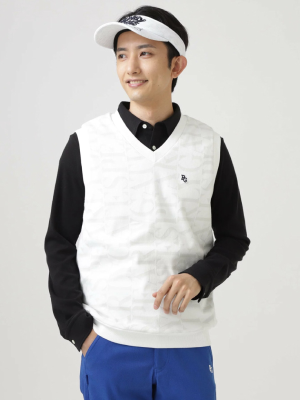 - ポロシャツやハイネックインナーとのレイヤードスタイルが品よく存在感を放つ、ゴルフからデイリーまで幅広く活用できるアイテムです。
