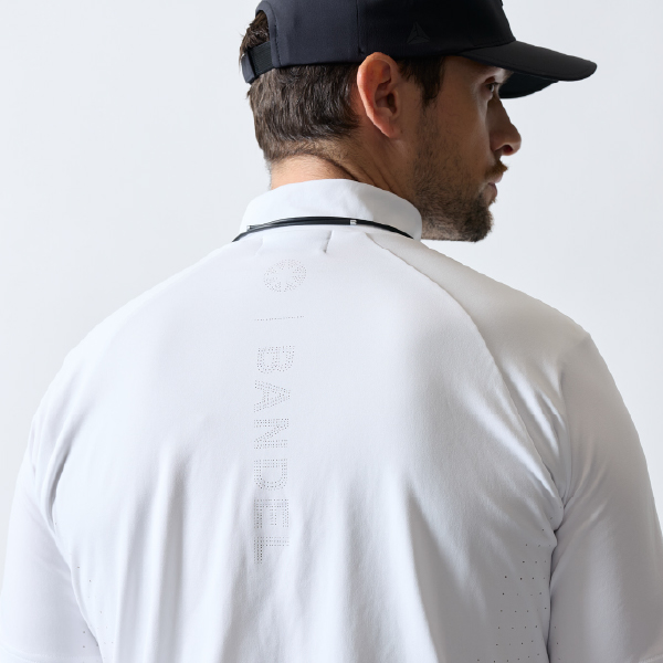 税込26,400円 - 軽量で柔らかな素材を使用し、バックロゴを細やかなヒートパンチングでデザイン。ボディ両脇にも通気性とデザイン性を兼ね備えたヒートパンチングを施した半袖モックネックシャツです。高い伸縮性と吸汗速乾機能を備えた、シンプルながら機能性とデザイン性にこだわったアイテムです。