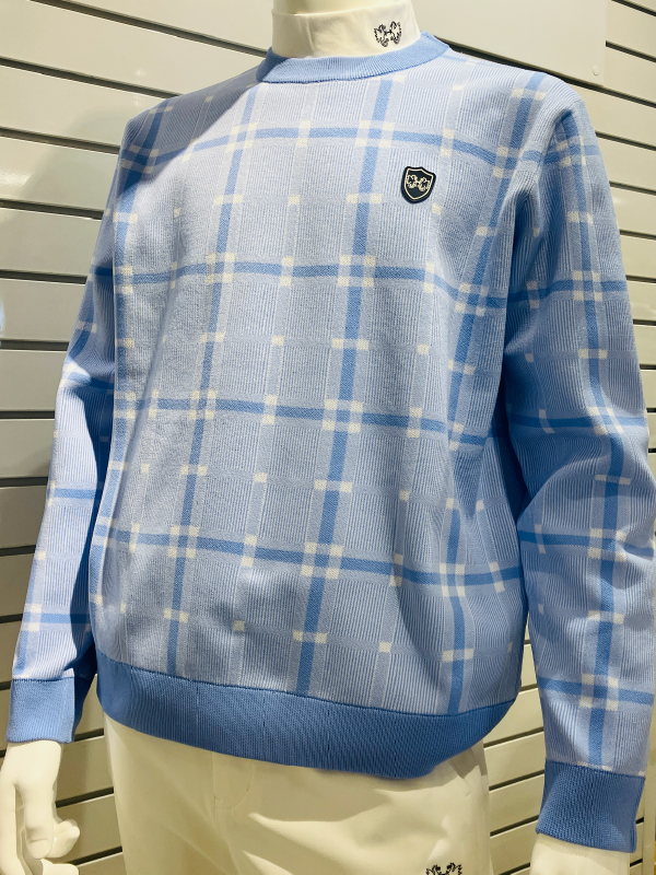 - トラッド感を格上げするチェック柄の春色ニットは、ゴルフのスタイリングを一気に高めてくれます。