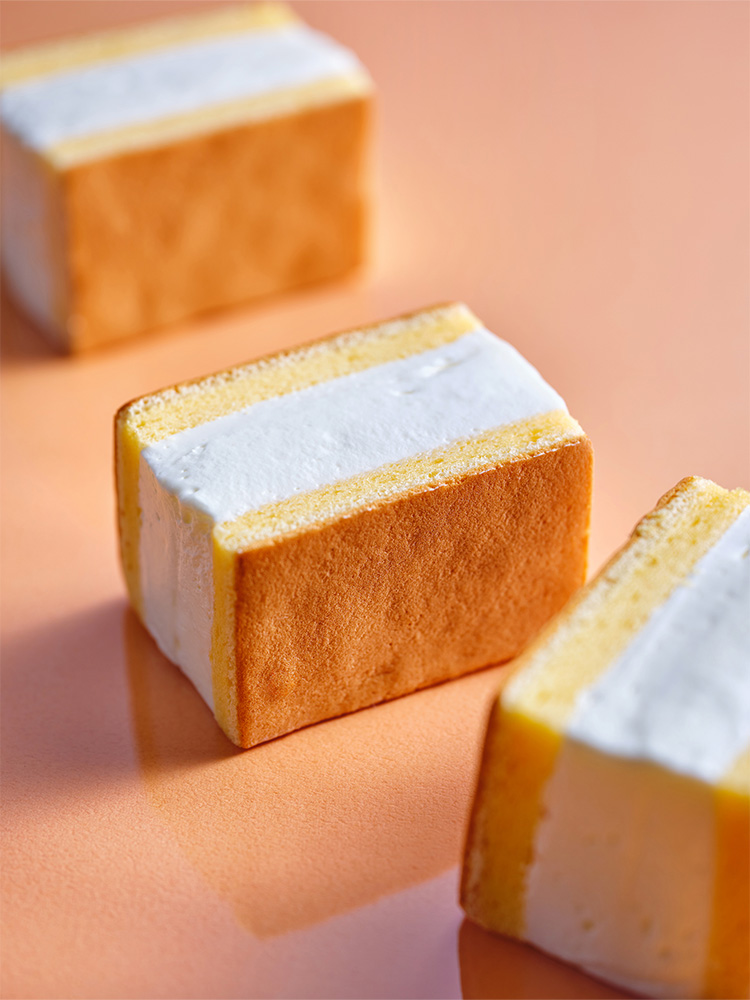 生乳ならではの豊かなミルク感に、やさしいバニラの香りを添えて。ふんわりとしたシフォン生地で挟みました。長年愛されてきた〈マールブランシュ〉の生クリームは、素材の良さとバランスを追い求めて理想のクリームに仕上げています。ひと口ほおばればふんわりほどける、シンプルだけど奥深い味わいをどうぞお楽しみください。