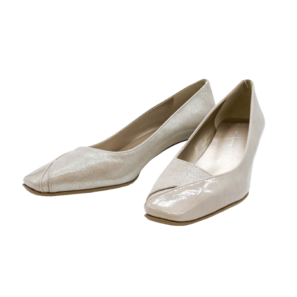 - パンプス切り替えデザインで表面に控えめな立体感と陰影を持たせたシンプルクリーンなパンプス。ニュアンスカラーのさりげない光沢が大事な1日の楽しい気持ちを盛り上げてくれます。撥水機能もついた万能なパンプスです。