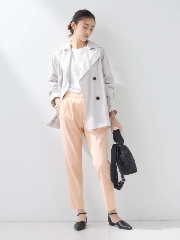 - 細身のラインパンツのため、オーバーサイズのトップスやアウター、ジャケットとバランス良くすっきりと合わせていただけます。ジャケットやブラウス、キレイめなニットと合わせた通勤スタイルから、カジュアルスタイルまで幅広いシーンで活躍します。
