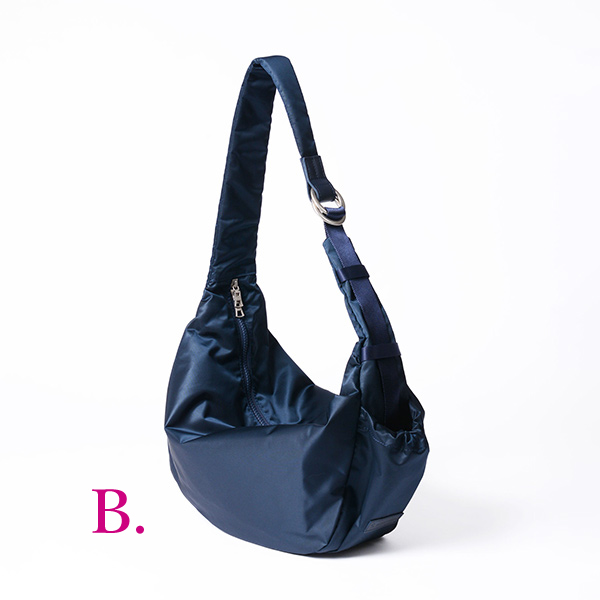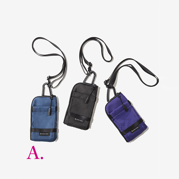 - A. Freak ショルダーポーチ 税込9,350円 B. Ark Solid ショルダーバッグ 税込29,700円 C. Tact ver.2 マイクロショルダーバッグ 税込28,600円