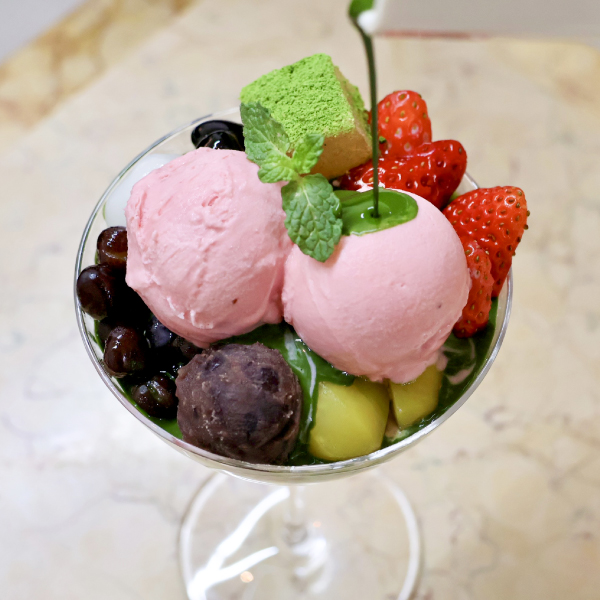 - 福寿園の宇治抹茶を使った抹茶ゼリーに濃厚な味わいのブラマンジェ、桜風味の寒天など店内で丁寧に仕込んだ自家製のスイーツをたっぷりと詰め込みました。春の季節だけの桜アイスクリームに、お好みで濃茶ソースをかけて、京都ならではの春の味をお楽しみください。