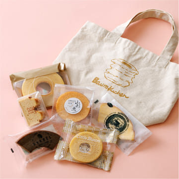 人気の「オリジナルトートバッグ&ご当地ミニバウムクーヘン詰め合わせセット」が今年も登場!6ブランドのミニバウムクーヘンをオリジナルのトートバッグに詰め合わせた限定商品。バウムクーヘン好きの方におすすめのセットです。
