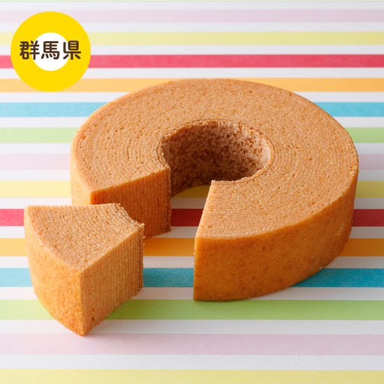 地元邑楽町のお米で焼きあげた、しっとりなめらかなバウムクーヘンに華やかさと、ふわっと香る和の風味をトッピング。