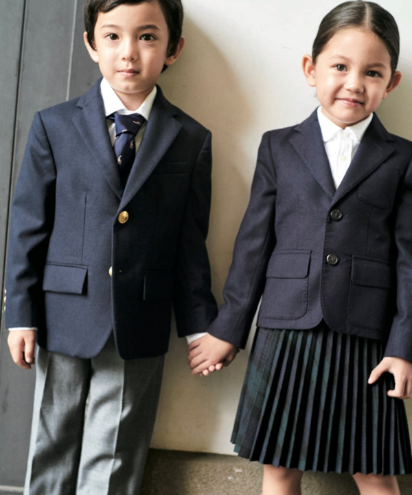 BOY着用のジャケットは、SHIPS MENS DRESS監修。よりトラッドな雰囲気にアップデートし、大人顔負けのデザインに仕上げました。 またGIRL着用のボレロは、襟から裾に同色系の繊細なブロードをつけて華やかさを演出。フロントにつけたくるみボタンも上品さをプラスしてくれます。