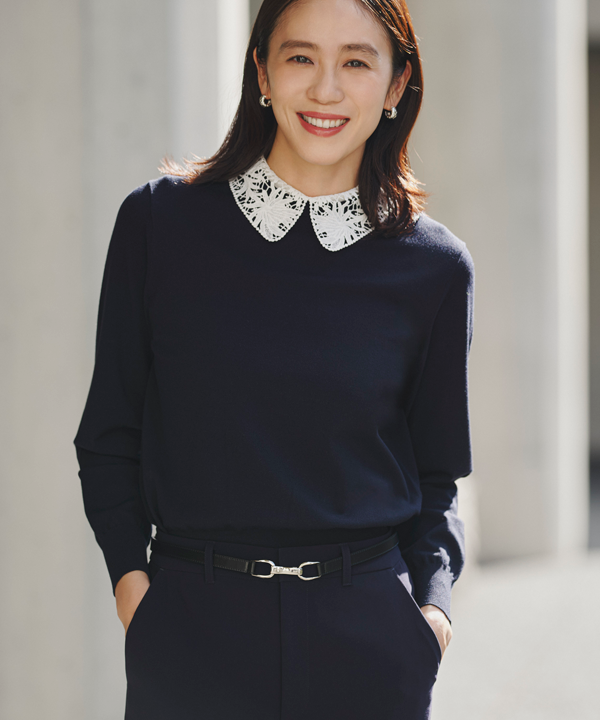 繊細なレース襟が華やぎを添える、きちんと感とほどよい抜け感を兼ね備えたニットプルオーバー。セレモニーからおでかけ、キレイめ通勤まで幅広く活躍します。スカートにもパンツにも合わせやすく、襟を外せばシンプルに着まわせる万能アイテムです。