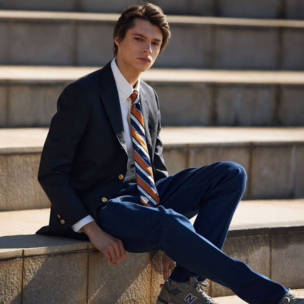 時代を超えて受け継がれる、不朽の名作「ペピンメリノ紺ブレザー」。レジメンタルストライプでタイドアップしたアメリカントラディショナルなスタイルは、正統派ならではのアイビースタイルの醍醐味を感じていただけます。