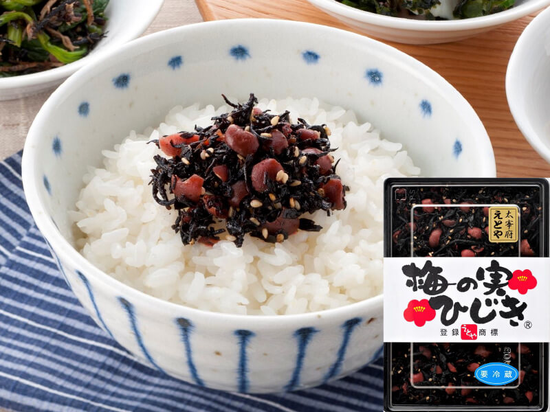 しそ風味の肉厚ひじきとカリッとした梅の実の食感が爽やかな、ご飯がすすむ逸品です。