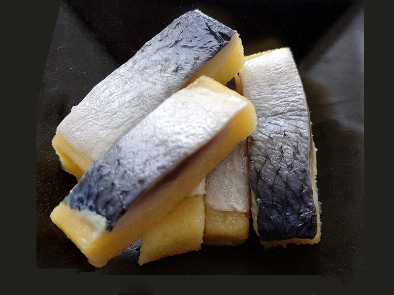 脂ののったにしんと固めたシシャモの卵を組み合わせた、食感と後味の良いさっぱりとした甘酢漬けです。